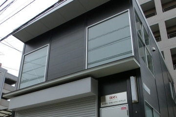 一般的な倉庫兼事務所ですが、外壁にはモダンなタイル調を使用し、